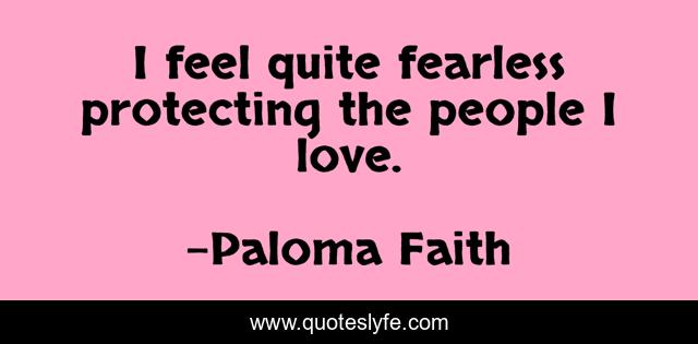 This page presents the quote "I feel quite fearless protecting the people I love.". Author of this quote is Paloma Faith. This quote is about fearless, love, affection, people,.