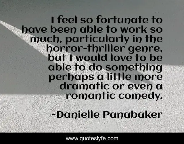This page presents the quote "I feel so fortunate to have been able to work so much, particularly in the horror-thriller genre, but I would love to be able to do something perhaps a little more dramatic or even a romantic comedy.". Author of this quote is Danielle Panabaker. This quote is about work, love, comedy, affection,.
