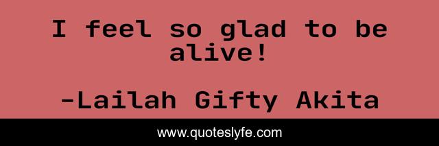 "Lailah Gifty Akita Quotes." Quoteslyfe.com, 2025. Fri. 05 Dec. 2025. <https://www.quoteslyfe.com/quote/I-feel-so-glad-to-be-alive-17071>.
