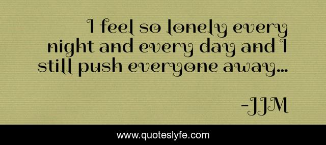 This page presents the quote "I feel so lonely every night and every day and I still push everyone away…". Author of this quote is JJM. This quote is about lonely, pain, depressed, hurt, broken, sadness, alone, sad, depression,.