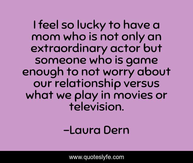 This page presents the quote "I feel so lucky to have a mom who is not only an extraordinary actor but someone who is game enough to not worry about our relationship versus what we play in movies or television.". Author of this quote is Laura Dern. This quote is about television, relationship,.