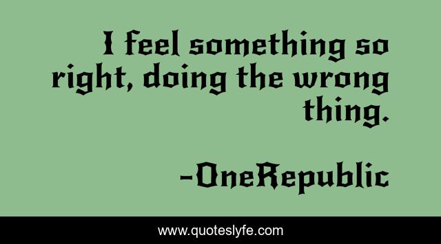 This page presents the quote "I feel something so right, doing the wrong thing.". Author of this quote is OneRepublic. .