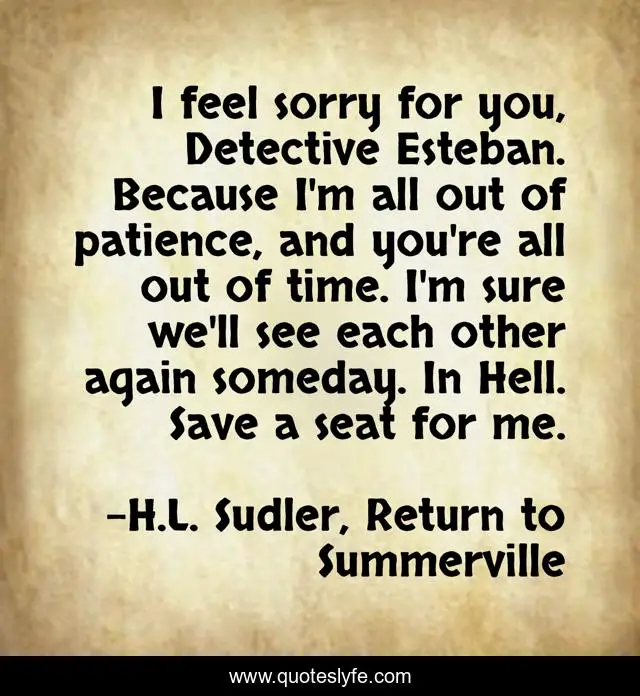 "H.L. Sudler, Return to Summerville Quotes." Quoteslyfe.com, 2025. Tue. 09 Dec. 2025. <https://www.quoteslyfe.com/quote/I-feel-sorry-for-you-Detective-Esteban-200557>.