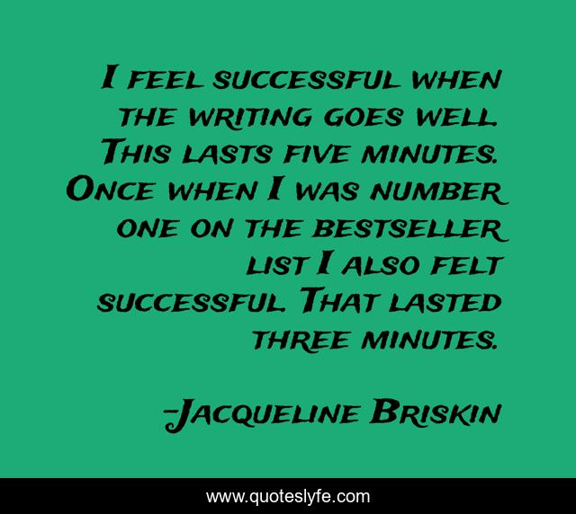 This page presents the quote "I feel successful when the writing goes well. This lasts five minutes. Once when I was number one on the bestseller list I also felt successful. That lasted three minutes.". Author of this quote is Jacqueline Briskin. This quote is about days, difficult,.