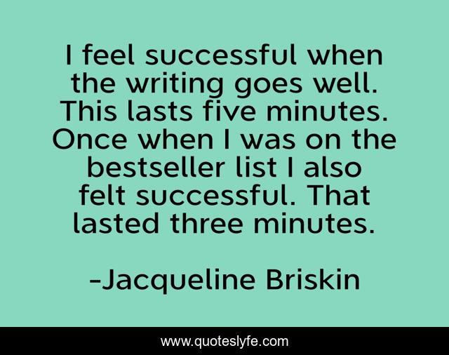 This page presents the quote "I feel successful when the writing goes well. This lasts five minutes. Once when I was on the bestseller list I also felt successful. That lasted three minutes.". Author of this quote is Jacqueline Briskin. .