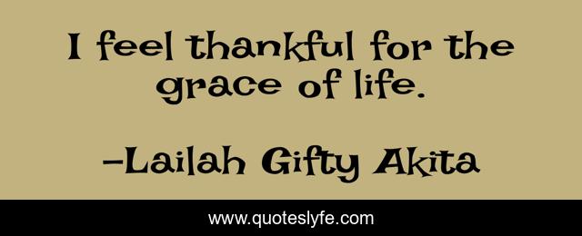 This page presents the quote "I feel thankful for the grace of life.". Author of this quote is Lailah Gifty Akita. This quote is about gratitude, thankful, life, lailah-gifty-akita-affirmations, grace,.