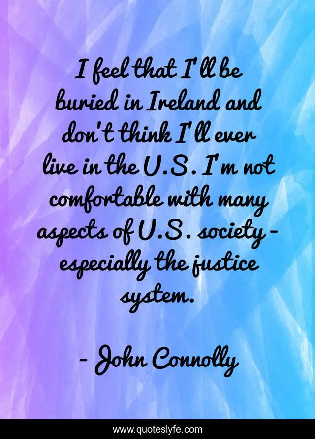 This page presents the quote "I feel that I'll be buried in Ireland and don't think I'll ever live in the U.S. I'm not comfortable with many aspects of U.S. society - especially the justice system.". Author of this quote is John Connolly. This quote is about justice, live, think,.