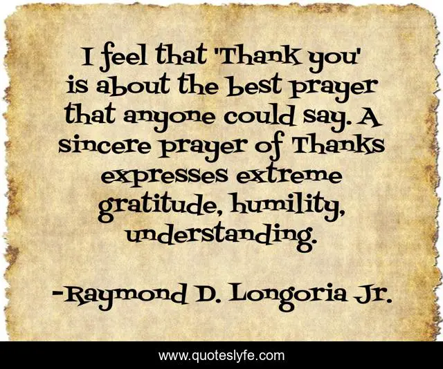 "Raymond D. Longoria Jr. Quotes." Quoteslyfe.com, 2025. Sat. 06 Dec. 2025. <https://www.quoteslyfe.com/quote/I-feel-that-Thank-you-is-about-111033>.