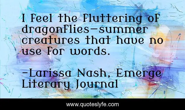 "Larissa Nash, Emerge Literary Journal Quotes." Quoteslyfe.com, 2025. Sat. 06 Dec. 2025. <https://www.quoteslyfe.com/quote/I-feel-the-fluttering-of-dragonflies-summer-249755>.