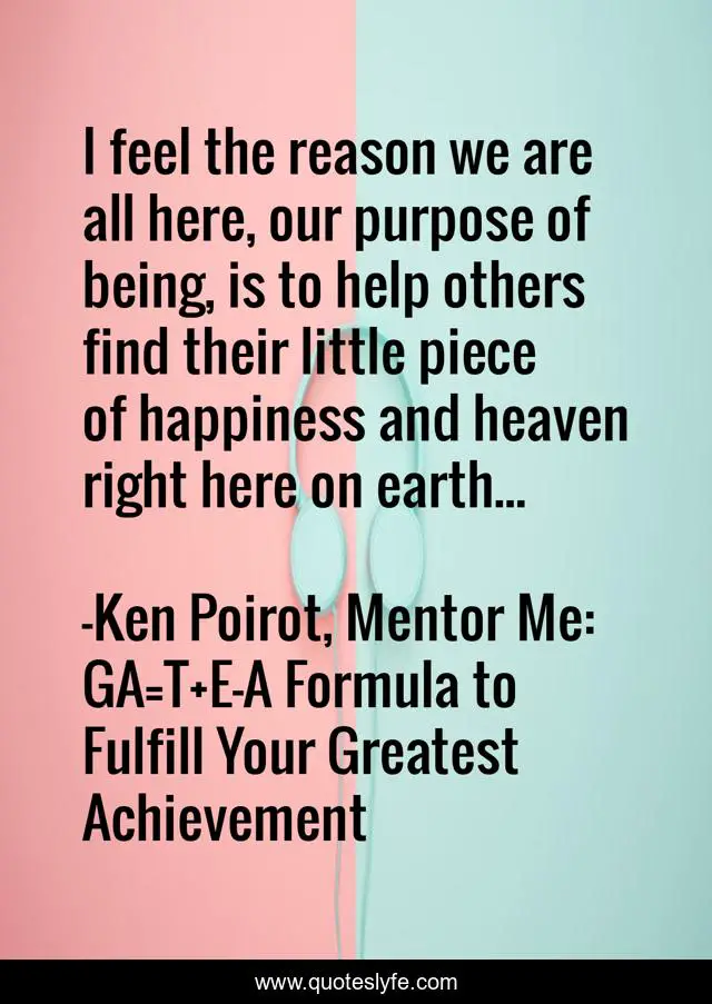 "Ken Poirot, Mentor Me: GA=T+E—A Formula to Fulfill Your Greatest Achievement Quotes." Quoteslyfe.com, 2025. Mon. 08 Dec. 2025. <https://www.quoteslyfe.com/quote/I-feel-the-reason-we-are-all-115910>.