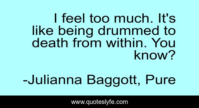 This page presents the quote "I feel too much. It's like being drummed to death from within. You know?". Author of this quote is Julianna Baggott, Pure. .