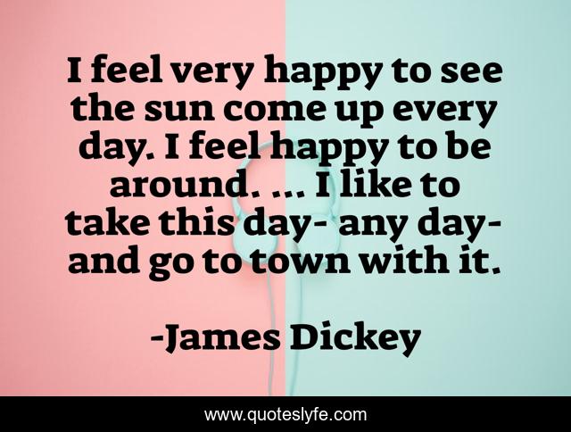 This page presents the quote "I feel very happy to see the sun come up every day. I feel happy to be around. ... I like to take this day- any day-and go to town with it.". Author of this quote is James Dickey. .