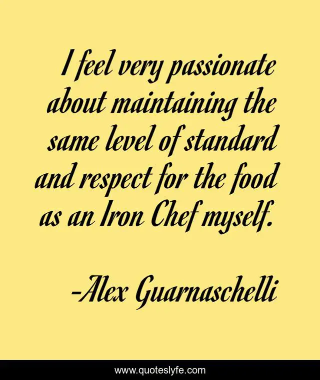 This page presents the quote "I feel very passionate about maintaining the same level of standard and respect for the food as an Iron Chef myself.". Author of this quote is Alex Guarnaschelli. This quote is about food, chef, myself,.