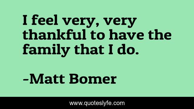 This page presents the quote "I feel very, very thankful to have the family that I do.". Author of this quote is Matt Bomer. This quote is about feel, i feel, family,.