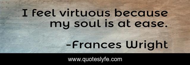 This page presents the quote "I feel virtuous because my soul is at ease.". Author of this quote is Frances Wright. This quote is about hedonism, ease, virtue, pleasure,.