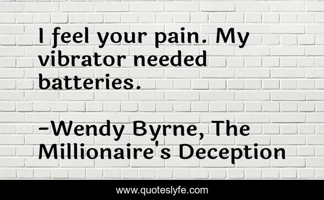 "Wendy Byrne, The Millionaire's Deception Quotes." Quoteslyfe.com, 2025. Sat. 06 Dec. 2025. <https://www.quoteslyfe.com/quote/I-feel-your-pain-My-vibrator-needed-155167>.
