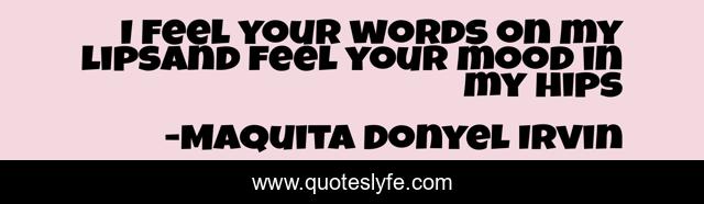 "Maquita Donyel Irvin Quotes." Quoteslyfe.com, 2025. Sat. 06 Dec. 2025. <https://www.quoteslyfe.com/quote/I-feel-your-words-on-my-lipsand-49544>.