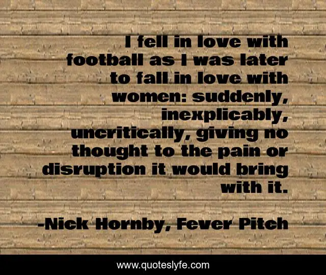 "Nick Hornby, Fever Pitch Quotes." Quoteslyfe.com, 2025. Tue. 09 Dec. 2025. <https://www.quoteslyfe.com/quote/I-fell-in-love-with-football-as-55505>.