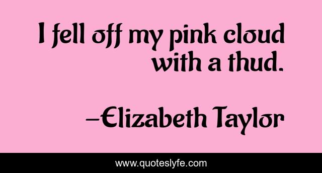 This page presents the quote "I fell off my pink cloud with a thud.". Author of this quote is Elizabeth Taylor. This quote is about pink, off, cloud,.