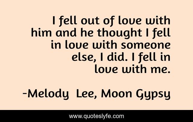 This page presents the quote "I fell out of love with him and he thought I fell in love with someone else, I did. I fell in love with me.". Author of this quote is Melody Lee, Moon Gypsy. This quote is about relationships, love, poetry, affection,.