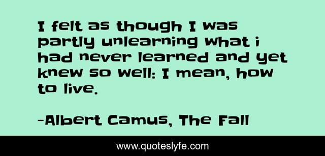 This page presents the quote "I felt as though I was partly unlearning what i had never learned and yet knew so well: I mean, how to live.". Author of this quote is Albert Camus, The Fall. This quote is about camus, living, life,.