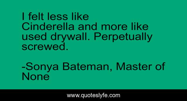 This page presents the quote "I felt less like Cinderella and more like used drywall. Perpetually screwed.". Author of this quote is Sonya Bateman, Master of None. .