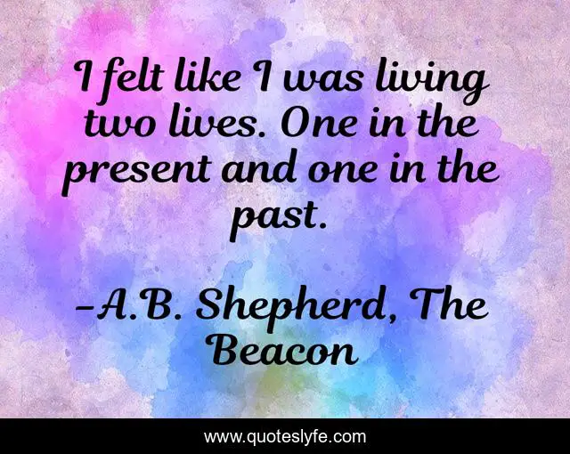 This page presents the quote "I felt like I was living two lives. One in the present and one in the past.". Author of this quote is A.B. Shepherd, The Beacon. This quote is about two-lives, past-lives, confusion, past, caught-inbetween, two-worlds, present,.