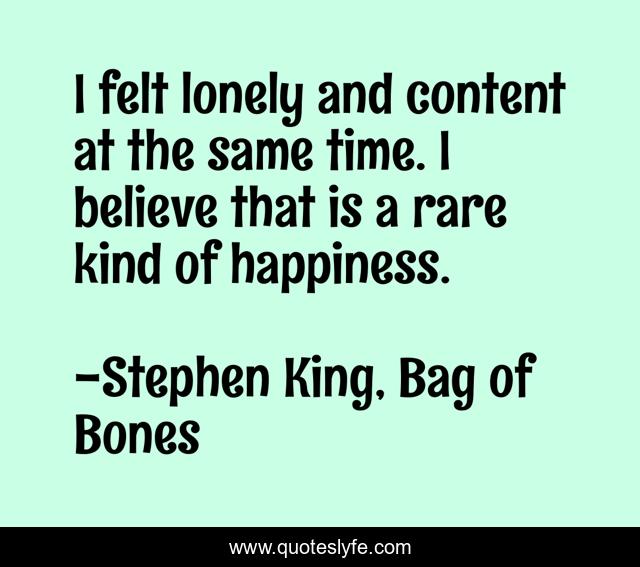 This page presents the quote "I felt lonely and content at the same time. I believe that is a rare kind of happiness.". Author of this quote is Stephen King, Bag of Bones. .