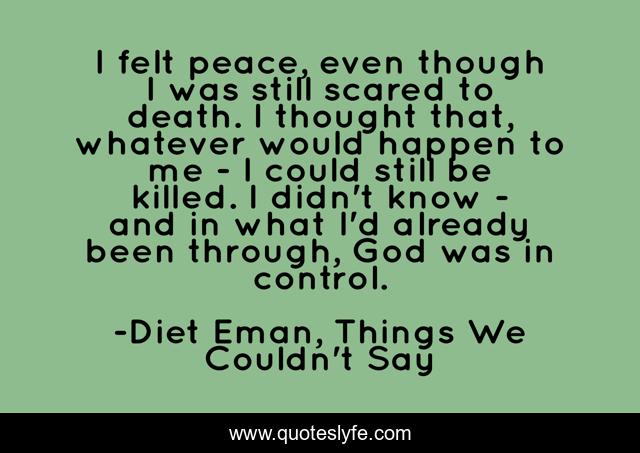 "Diet Eman, Things We Couldn't Say Quotes." Quoteslyfe.com, 2025. Mon. 08 Dec. 2025. <https://www.quoteslyfe.com/quote/I-felt-peace-even-though-I-was-84466>.