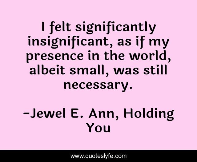 "Jewel E. Ann, Holding You Quotes." Quoteslyfe.com, 2025. Fri. 05 Dec. 2025. <https://www.quoteslyfe.com/quote/I-felt-significantly-insignificant-as-if-my-159968>.