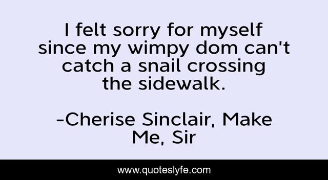 This page presents the quote "I felt sorry for myself since my wimpy dom can’t catch a snail crossing the sidewalk.". Author of this quote is Cherise Sinclair, Make Me, Sir. This quote is about erotica, make-me-sir, cherise-sinclair,.