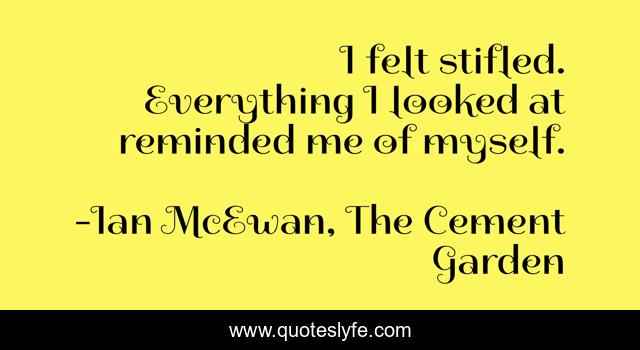 "Ian McEwan, The Cement Garden Quotes." Quoteslyfe.com, 2025. Fri. 05 Dec. 2025. <https://www.quoteslyfe.com/quote/I-felt-stifled-Everything-I-looked-at-141667>.