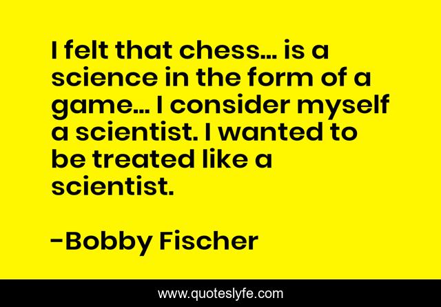 I felt that chess... is a science in the form of a game... I consider myself a scientist. I wanted to be treated like a scientist.