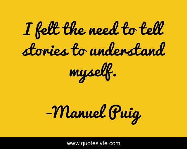 This page presents the quote "I felt the need to tell stories to understand myself.". Author of this quote is Manuel Puig. .