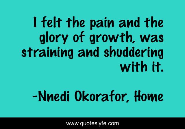 This page presents the quote "I felt the pain and the glory of growth, was straining and shuddering with it.". Author of this quote is Nnedi Okorafor, Home. .