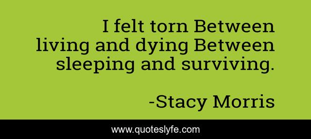 This page presents the quote "I felt torn Between living and dying Between sleeping and surviving.". Author of this quote is Stacy Morris. .