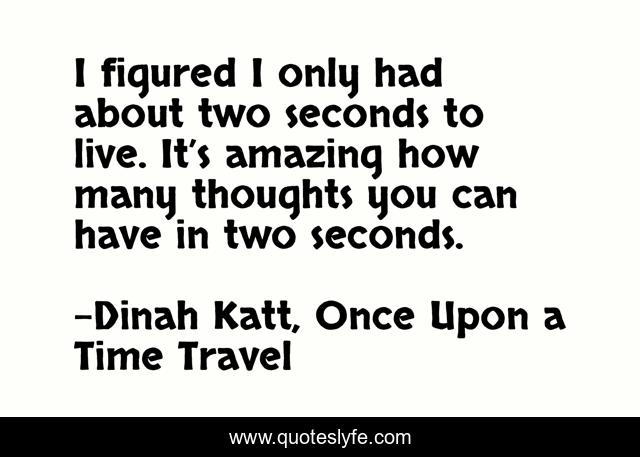 This page presents the quote "I figured I only had about two seconds to live. It’s amazing how many thoughts you can have in two seconds.". Author of this quote is Dinah Katt, Once Upon a Time Travel. This quote is about die, live, time-travel, rebel, two-seconds,.