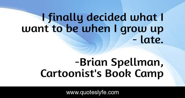This page presents the quote "I finally decided what I want to be when I grow up - late.". Author of this quote is Brian Spellman, Cartoonist's Book Camp. This quote is about immaturity, vocation, humor, profession, maturity,.