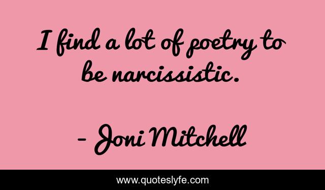 This page presents the quote "I find a lot of poetry to be narcissistic.". Author of this quote is Joni Mitchell. This quote is about find, lot, narcissistic,.