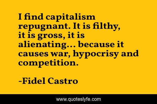 This page presents the quote "I find capitalism repugnant. It is filthy, it is gross, it is alienating... because it causes war, hypocrisy and competition.". Author of this quote is Fidel Castro. This quote is about competition, capitalism,.