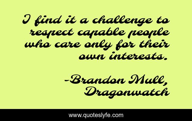 This page presents the quote "I find it a challenge to respect capable people who care only for their own interests.". Author of this quote is Brandon Mull, Dragonwatch. This quote is about respect, wisdom, kindness, empathy,.