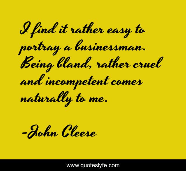 This page presents the quote "I find it rather easy to portray a businessman. Being bland, rather cruel and incompetent comes naturally to me.". Author of this quote is John Cleese. This quote is about me, find, easy,.