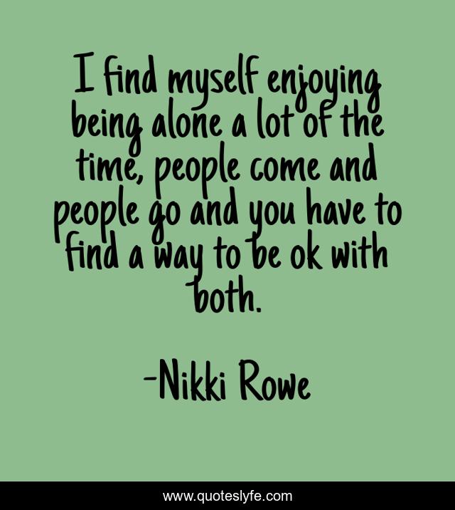 This page presents the quote "I find myself enjoying being alone a lot of the time, people come and people go and you have to find a way to be ok with both.". Author of this quote is Nikki Rowe. This quote is about courage, illness, nikki-rowe, guidance, insight, mindfulness-practice, journey, crps, adversity,.