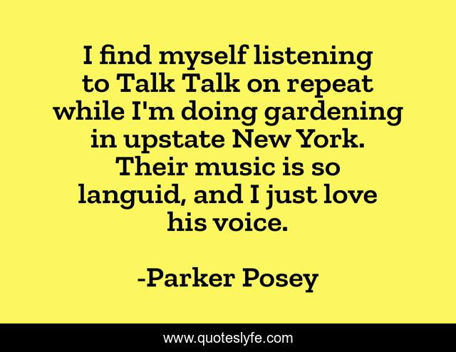 This page presents the quote "I find myself listening to Talk Talk on repeat while I'm doing gardening in upstate New York. Their music is so languid, and I just love his voice.". Author of this quote is Parker Posey. This quote is about love, myself, music, affection,.