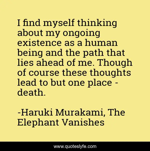 This page presents the quote "I find myself thinking about my ongoing existence as a human being and the path that lies ahead of me. Though of course these thoughts lead to but one place - death.". Author of this quote is Haruki Murakami, The Elephant Vanishes. .