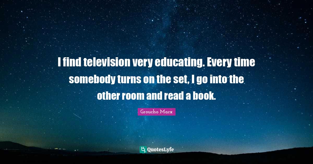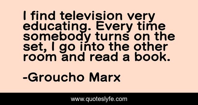 This page presents the quote "I find television very educating. Every time somebody turns on the set, I go into the other room and read a book.". Author of this quote is Groucho Marx. This quote is about television, books, humor, reading,.