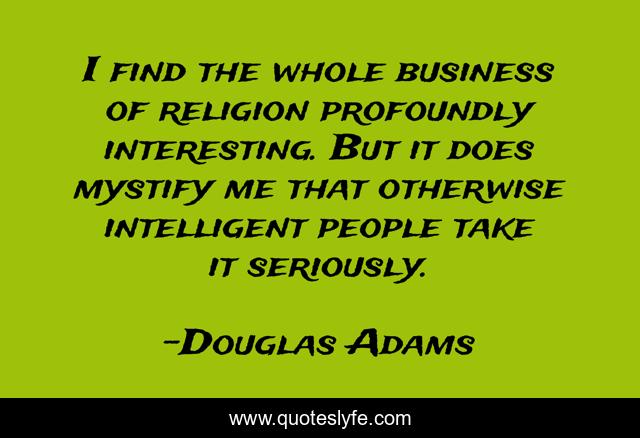 This page presents the quote "I find the whole business of religion profoundly interesting. But it does mystify me that otherwise intelligent people take it seriously.". Author of this quote is Douglas Adams. This quote is about intelligence, religion,.