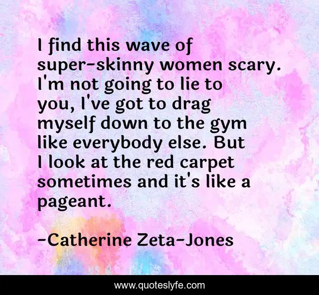 This page presents the quote "I find this wave of super-skinny women scary. I'm not going to lie to you, I've got to drag myself down to the gym like everybody else. But I look at the red carpet sometimes and it's like a pageant.". Author of this quote is Catherine Zeta-Jones. This quote is about lie, myself, red,.