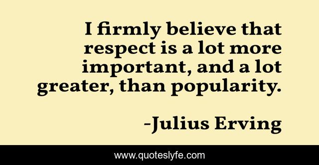 This page presents the quote "I firmly believe that respect is a lot more important, and a lot greater, than popularity.". Author of this quote is Julius Erving. This quote is about believe, important,.