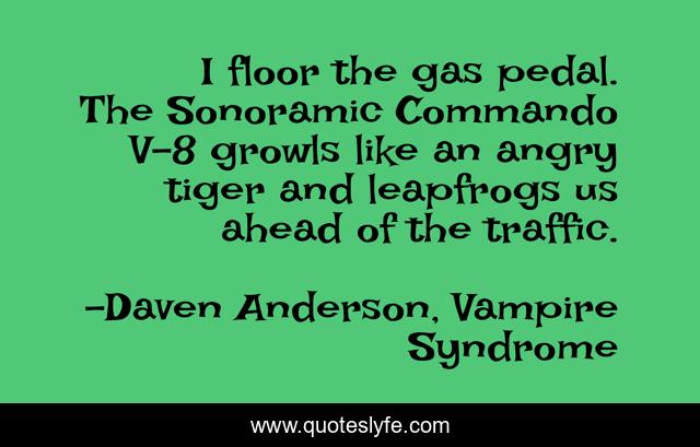 "Daven Anderson, Vampire Syndrome Quotes." Quoteslyfe.com, 2025. Tue. 09 Dec. 2025. <https://www.quoteslyfe.com/quote/I-floor-the-gas-pedal-The-Sonoramic-202757>.